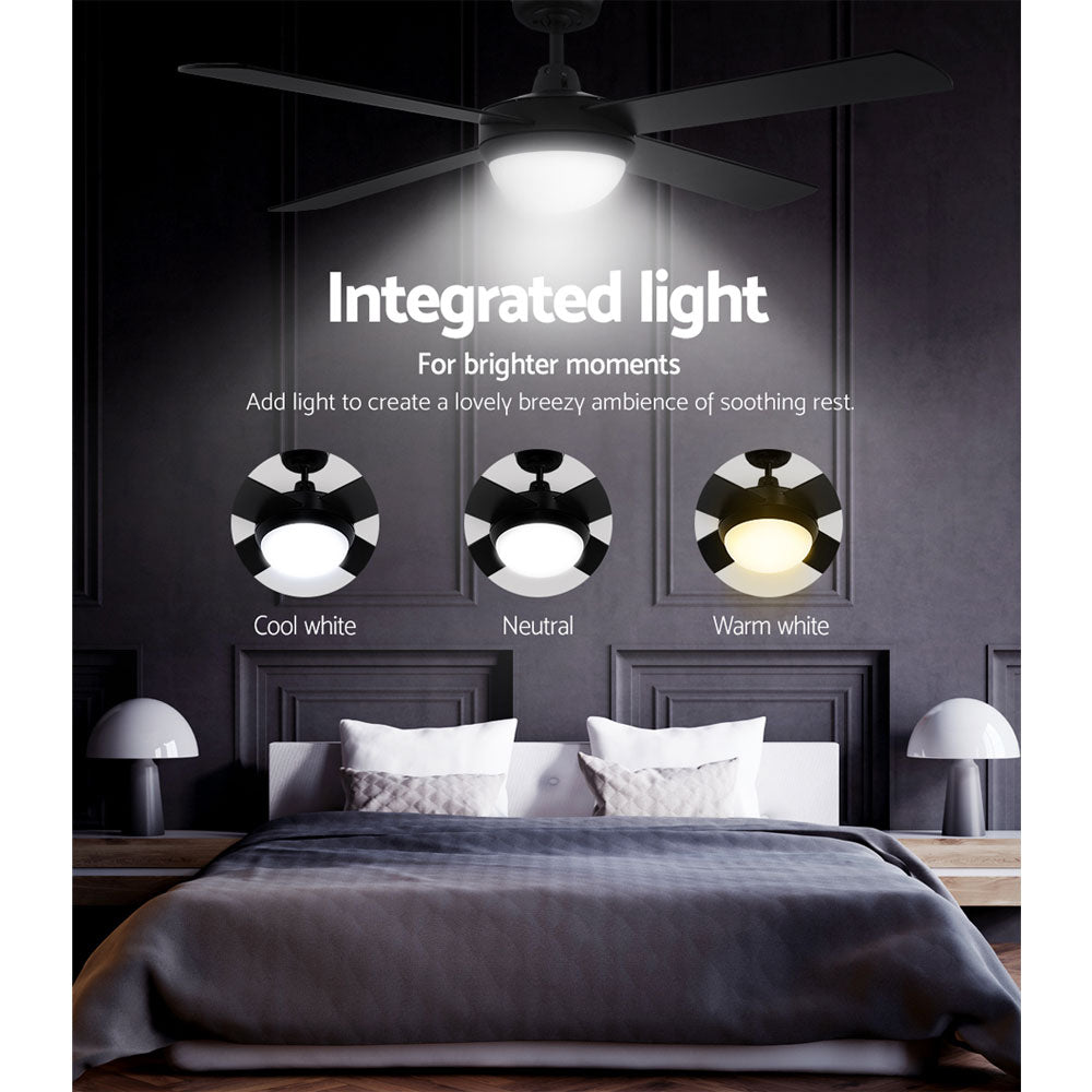 Regular price $221.99Gentle breezes, light drafts or high winds, the Devanti 52" Ceiling Fan is ever ready to meet your requirements easily. With six fan speeds, the contemporary-design ceiling fan also has a reverse cycle motor that can create downdrafts during summer or updrafts during winter for greater comfort. Its four high-quality wooden blades are pitched at an airflow-inducing 12 degree for more effective wind creation. Plus, its energy-efficient 35W motor operates ever so quietly. Also featured is built-in memory-enabled LED lighting that can bring on a cool white, warm white or neutral lighting ambience to go with the fanning function. Better still, the fan can be set for up to 8 hours of timed operation and the handy remote control makes this fan a breeze to use from anywhere in the room. The ceiling fan also comes with all the accessories for an easy installation including an extension rod. Available in black, white or silver colour to match your decoration easily.