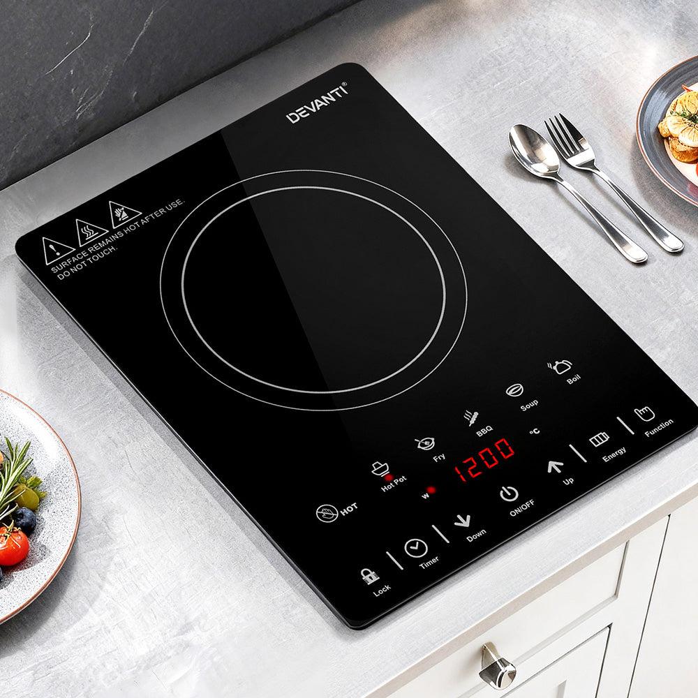 Regular price $99.99Whether it is for your existing or new home, our Devanti Induction Cooktop is just the thing you need for easy, no-fuss cooking. Loaded with an extensive list of chef-friendly features such as 5 cooking modes, touch controls, a child lock, 24-hour preset/timer functions, overheat protection and efficient heat dissipation, this cooktop is also incredibly sleek with its high-grade black ceramic glass plate. It features 10 levels of power adjustment to choose from to prepare that perfect dish. Better still, the cooktop will turn itself off when temperatures get excessively high, or you simply forget to turn it off after your cooking. Powerful and yet integrally safe, the cooktop promises many moments of hassle-free delicious cooking with the right blend of sophistication and class for your kitchen.