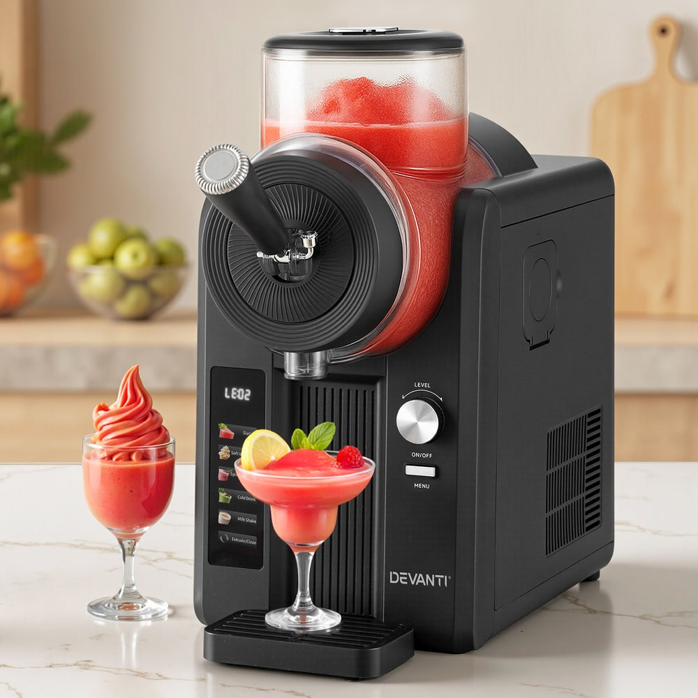 Devanti Slushie Machine & Ice Cream Maker churns out 8 serves of smooth-as treats?no pre freezing needed! Ideal for summer scorchers, kids' parties, or a cheeky dessert, it's dead simple to use and a breeze to clean. Just chuck in your ingredients, press go, and you're sorted!